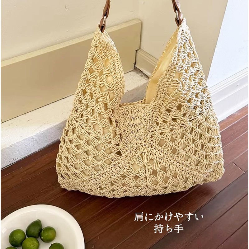 Lapimou Basket Bag, Macrame Shoulder Knitting Bag, Yukata, Japanese Clothing, Summer Pochette, Small, Straw Bag, Shoulder Bag, For Summer Use, Net, white (off-white)