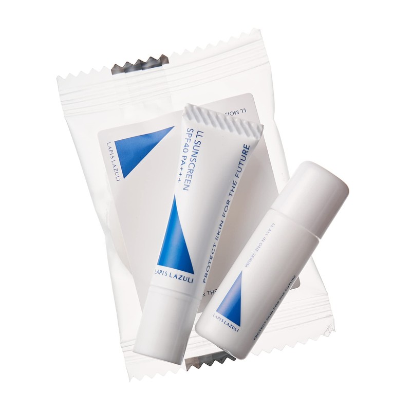 Lapis Lazuli LL Trial Set for Dry Skin, Highly Moisturizing, Skin Care, 3-Day Trial Set, Travel Set, Sensitive Skin, Hypoallergenic, Made in Japan, Ceramide Formula, Hyaluronic Acid Soap, 0.4 oz (10 g), All-in-One Serum, 0.2 fl oz (5 ml), Non-Chemical Su