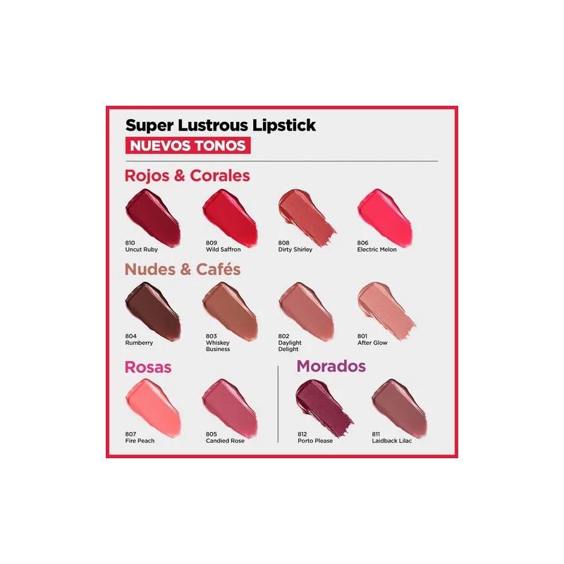 El lápiz labial Revlon Super Lustrous es un clásico icónico por una razón. Se desliza sin esfuerzo con un 80 % de ingredientes acondicionadores y minimiza las líneas para lograr labios suaves y de aspecto más lleno. Sensación cremosa e hidratante. Este labial, que pertenece a la reconocida línea Super Lustrous de Revlon, se presenta en un formato de barra, lo que facilita su aplicación precisa y cómoda. Su fórmula está diseñada para ofrecer un acabado duradero y vibrante, sin preocuparse por la fecha de vencimiento. Ideal para quienes buscan un producto nuevo que combine calidad y estilo, este labial es perfecto para cualquier ocasión, ya sea un evento especial o el uso diario. Con su textura suave y su capacidad para realzar la belleza natural de los labios, el labial Rumberry de Revlon se convertirá en un imprescindible en tu colección de maquillaje.