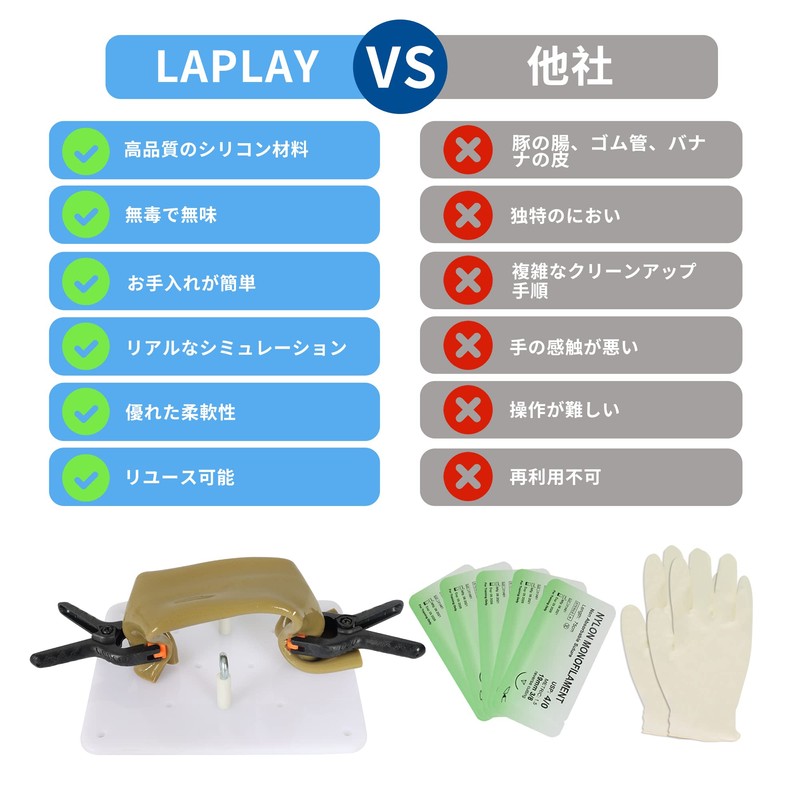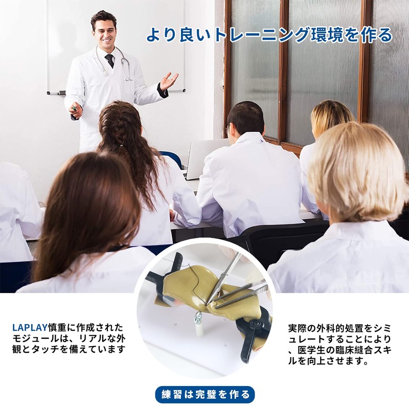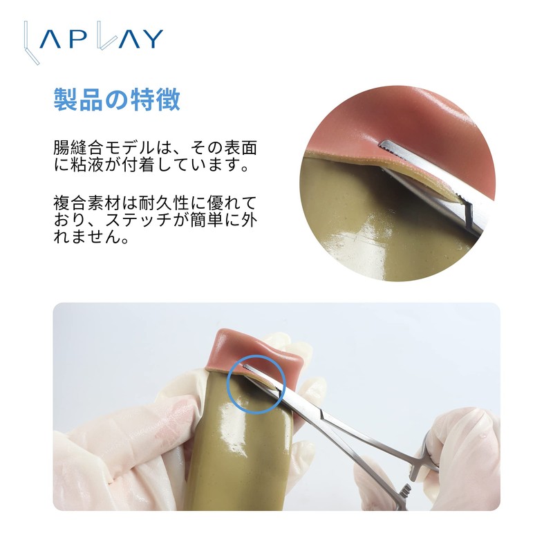 - [FULL SEWING EXERCISE KIT]: The LAPLAY simulated intestinal model practice kit for surgical training includes 1 (20cm) intestinal model, 1 support table, 2 retaining clips, 5 x sewing thread with needle (4/0 nylon) and 1 x glove medical disposable