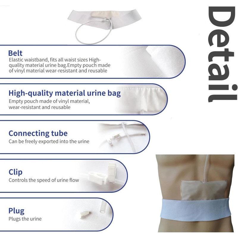 PREMIUM QUALITY MATERIAL: Our urine pouch is made of high quality clear plastic, which will not leak even under strong pressure and repeated use. The adjustable waistband is made of high elastic material, breathable and comfortable for most body types.