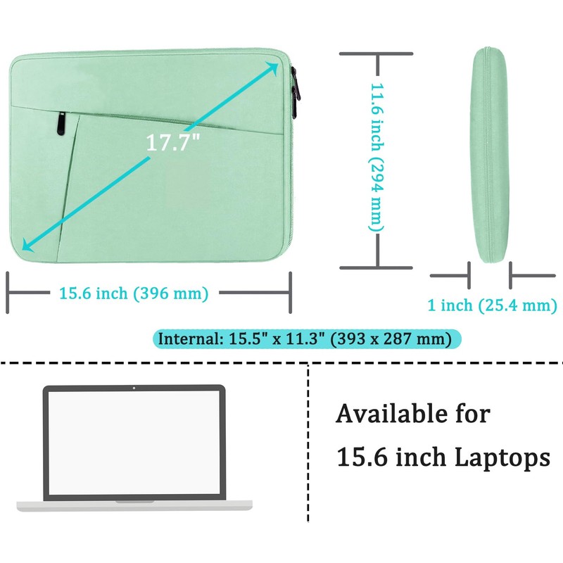 Laptop Case 15.6 inch, Shockproof Protective Computer Carrying Cover with Front Pocket, Briefcase Handbags Laptop Sleeve for 15.6 inch HP, Dell, Acer, Asus, Notebook, Light Blue