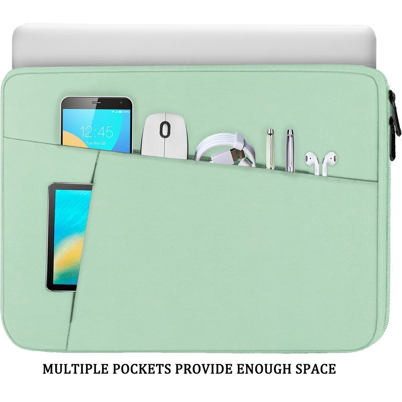 • EXTRA STORAGE SPACE: Extra two pocket in front for additional storage such as charger, power adaptors, external hard drive, earphone, cables, Portable Mouse, Keys, Cards, Pens, Cell Phone and other accessories etc. This protective carrying sleeve case bag with pocket is ideal for you to take your laptop notebook computer out.