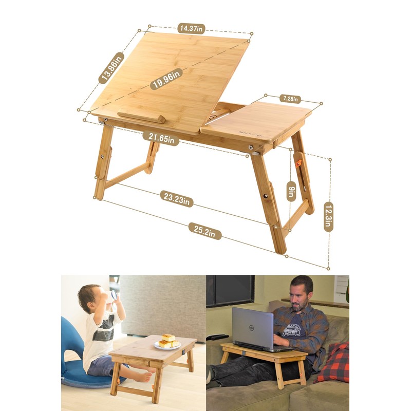 Laptop Desk Nnewvante Table Adjustable Bamboo Foldable Breakfast Serving Bed Tray w' Tilting Top Drawer