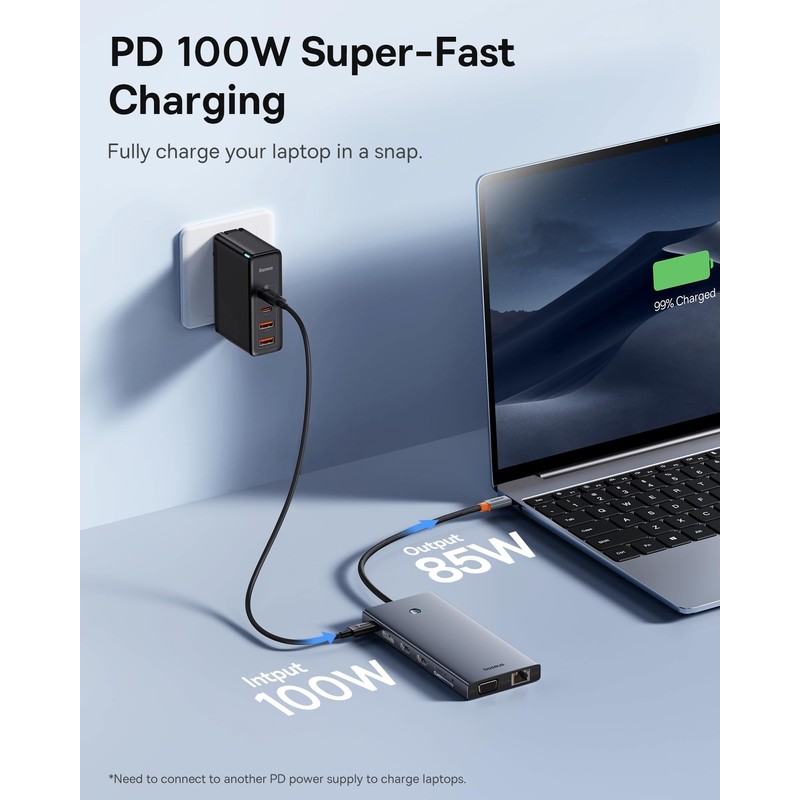 - Gigabit Ethernet and PD 100W Power Delivery:Via Gigabit Ethernet port, you can have a faster and stabler internet surfing or gaming speed with less loading and buffering compared to Wi-Fi Connection. And the PD 100W Port supports fast charging (up to 85W out) , so you can power up your devices while accessing the hub’s other functions.