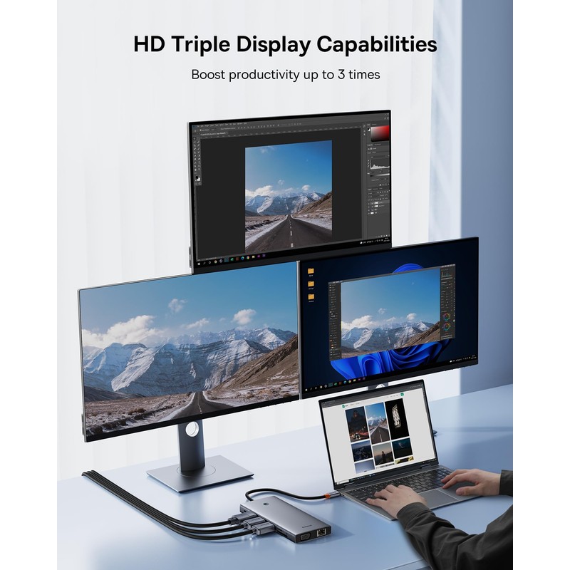 Laptop Docking Station, Baseus 13-in-1 USB C Docking Station Dual Monitor with 2 HDMI 4K@60Hz, DP 4K@120Hz, VGA, 10Gbps Data Transfer, PD 100W and Ethernet for Dell/HP/Lenovo/Surface Laptop