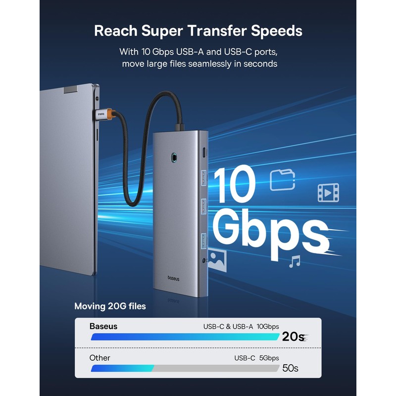 - 10Gbps Super Speed Data Transfer With USB 3.1: With two 10 Gbps USB-A ports and one 10 Gbps USB-C port, you can easily transfer large media files including movies and photos in seconds at a speed of 1000M/S, getting seamless access to the data you need and saving more data transfer time!