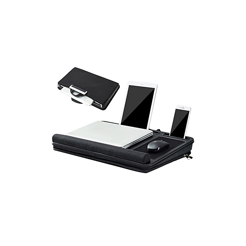 Laptop Lap Desk with All in One Bag to Hold Laptop Computer up to 17.3 Inch, Home Office Bed Desk with Cushion Sofa Desk, Laptop Stand with Wrist Pad (Black Carbon)