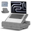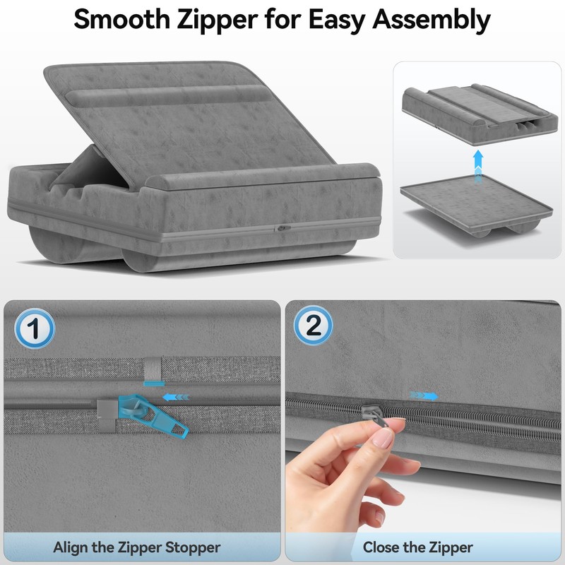 - Portability and Storage: This laptop desk doubles as both a laptop stand and a portable carrying case. It features a zippered compartment to hold your laptop, with an additional storage pouch inside for documents, work materials, magazines, and more. What's more, laptop pillow comes with a handle and weighs only 2.05 pounds, making it incredibly convenient for travel or business trips—just grab it and go.