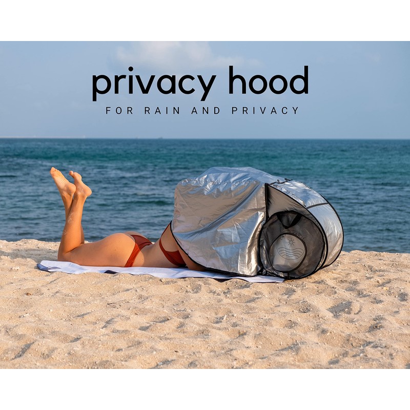 - HIGH QUALITY, WATERPROOF FABRIC: The silver reflective fabric is durable and deflects light and heat to prevent devices from overheating. The fabric is made with the highest quality umbrella fabric and can withstand working outside rain or shine. It also includes a pullover head cover attachment for rainy weather and privacy.