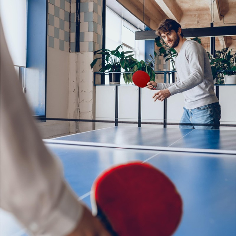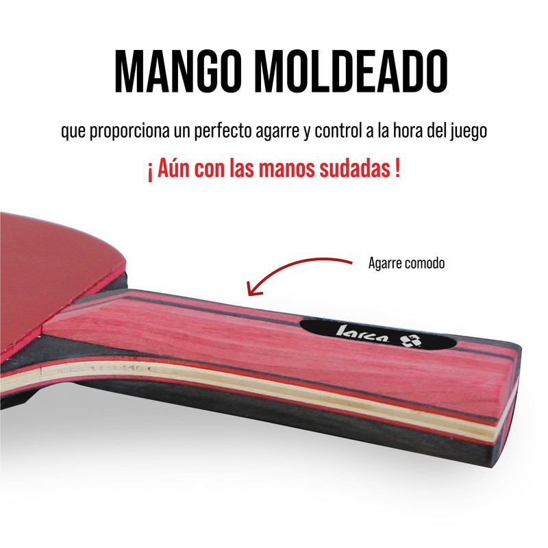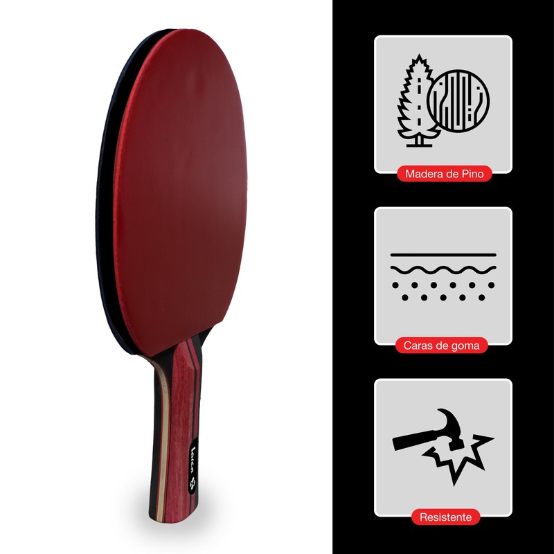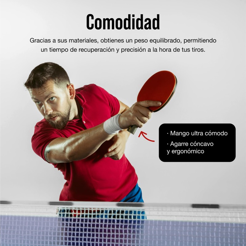 - Hemos diseñado esta raqueta de ping pong para los verdaderos Pongers; Gracias a sus materiales, obtienes un peso equilibrado, permitiendo un tiempo de recuperación y precisión a la hora de tus tiros.