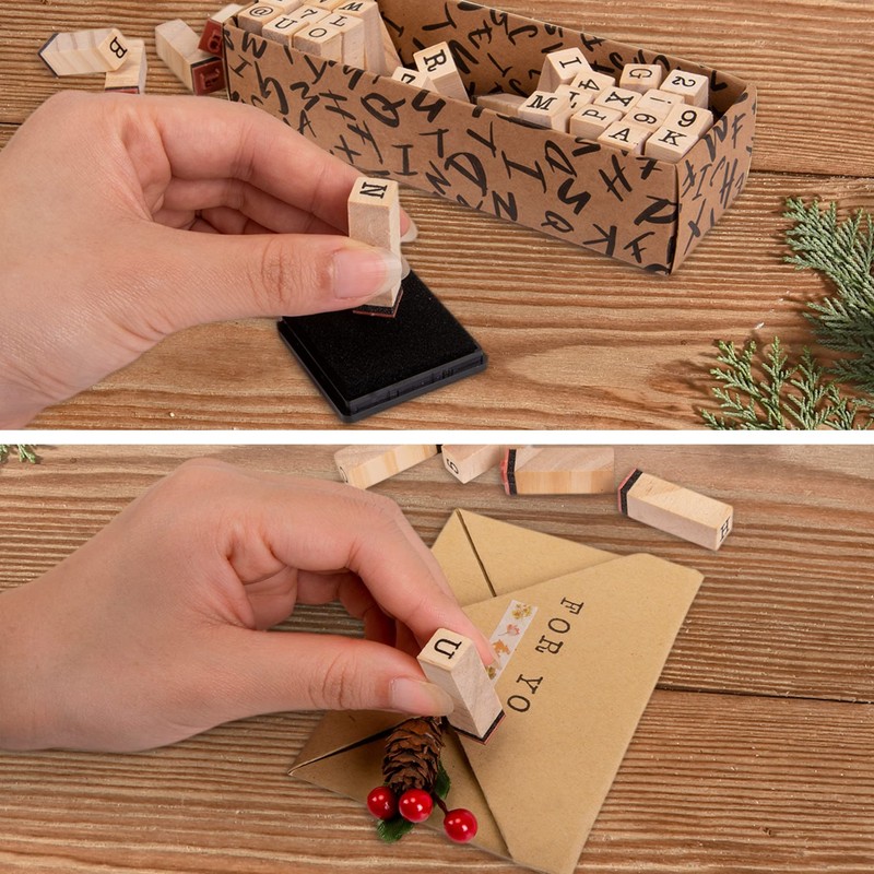 • ❤️[Excellent Quality]:The letter stamp is made of wood and rubber, with clear handwriting, no peculiar smell, environmental protection and health. The storage box is made of cardboard and the stamp is also easily recognisable inside the box