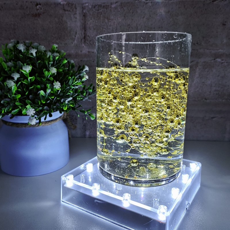 - Lights point up through any vase you place on it. It will light any transparent, clear, frosted, colored glass, or more that can refract light.