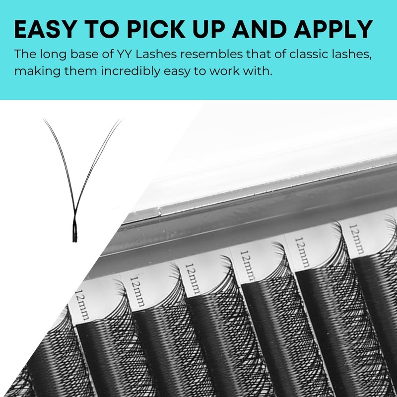 - Easy application: The long base of YY Lashes resembles that of classic lashes, making them incredibly easy to pick up and apply. Whether you're an experienced professional lash artist or just starting out, you'll achieve stunning results with minimal effort.