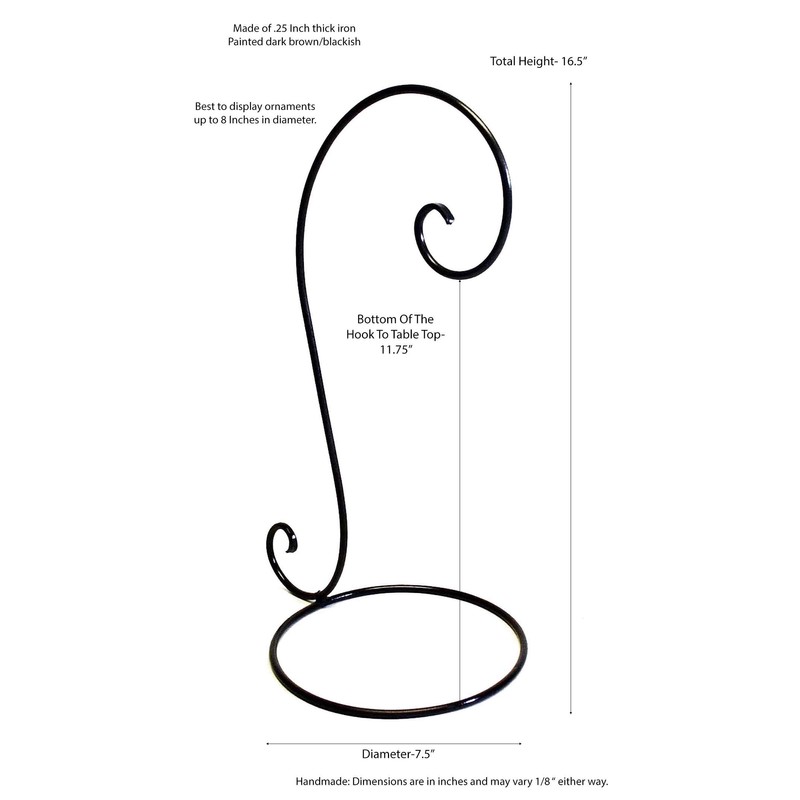 Laredo Wrought Iron Ornament or Globe Display Stand-Single Hook-16.5 Inches Tall. Painted Bronze