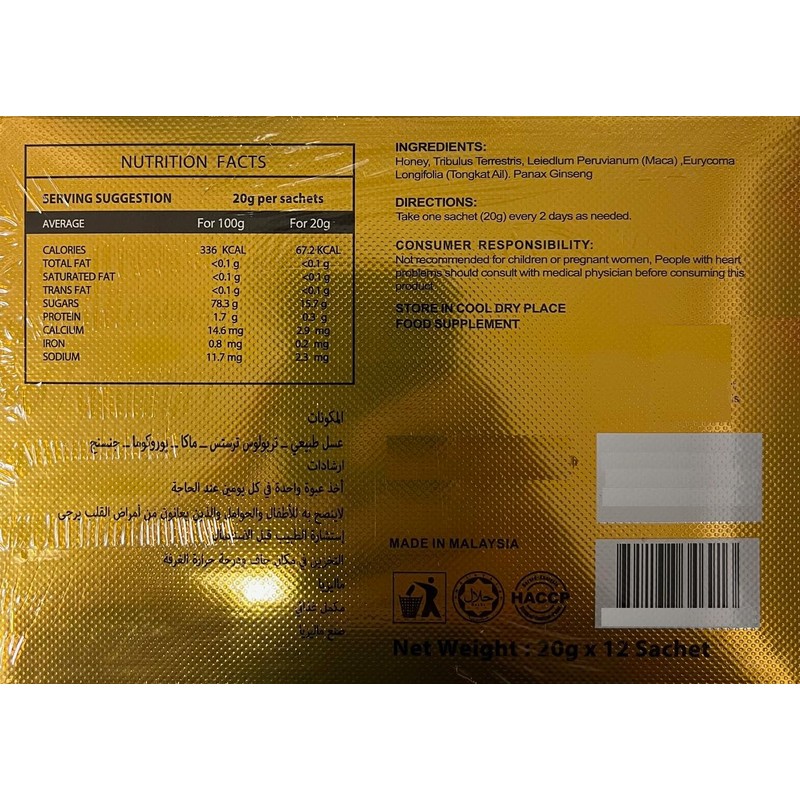 Large 12 Pack of Original Extra Strong Full Strength Natural Honey Pack Enriched with Natural Jelly - Bee Pollen from Ginseng Blossoms & Herbs, Full 12ct Box of 20G Each Honey Sachets Pouches