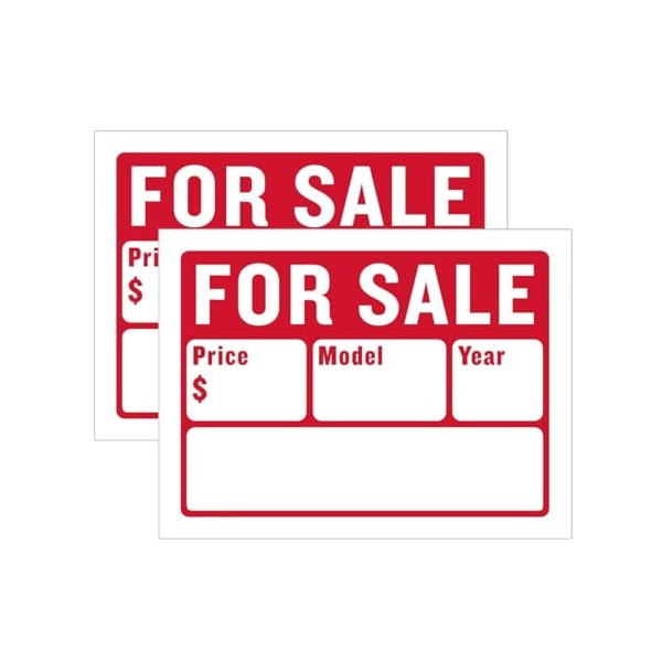 - Easy-to-ReVersatile Use: Ideal for selling cars, trucks, or other vehicles in multiple locations. Take control of your sales with this durable and professional For Sale Sign 2-pack, helping you attract buyers and sell faster!ad Design: Bold, spacious layout for maximum legibility and attention-grabbing display.