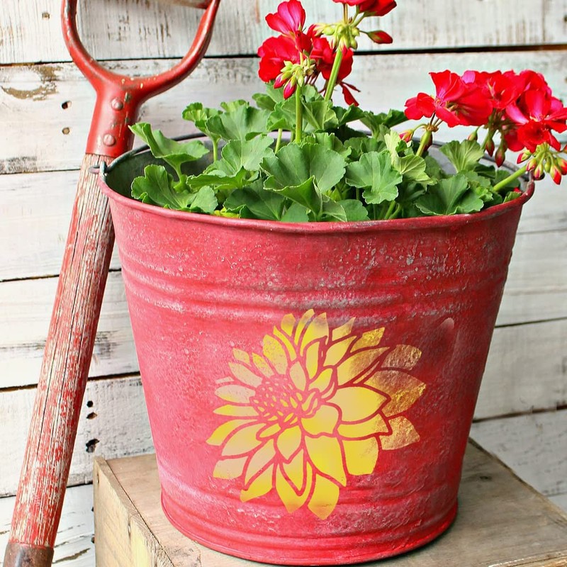 An individual dahlia stencil measuring 12”x12”