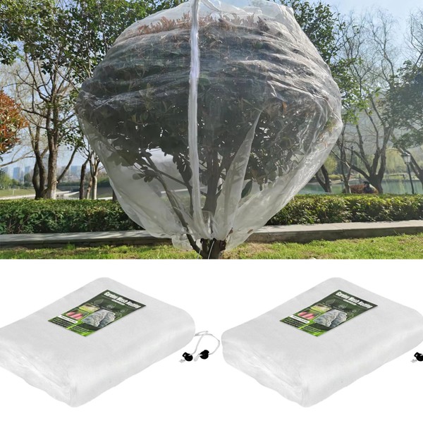 KEOHOLI Large 2 Packs Fruit Tree Netting Bags with Zipper and Drawstring, Insect Bird Barrier Netting Plant Covers for Fruit Vegetable Trees, Bushes,Flower in Garden (10 * 10ft)