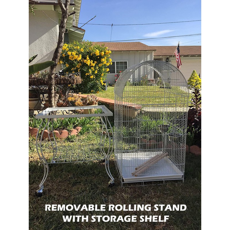 Large 20-Inch Open Plays Dome Top 5/8 Inch Bar Spacing Lovebird Cockatiel Cockatiels Parakeets Cage Stainless Steel Cups Removable Stand (White)