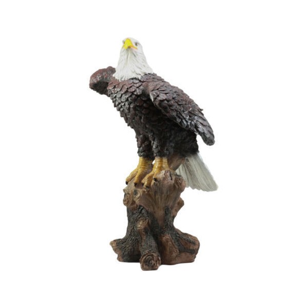 • This Large American Bald Eagle Perching On Tree Stump Statue is made of resin, hand painted and polished. Color Tone may vary from pictures.