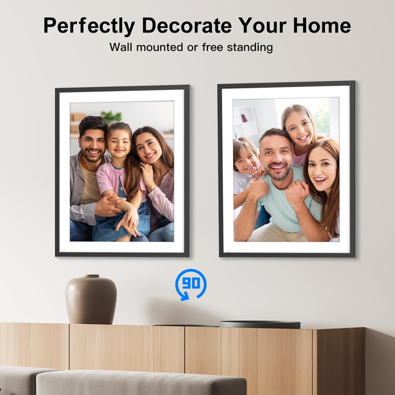 - [Massive Touchscreen Display] Featuring a touchscreen with dynamic visuals, this 17-inch digital picture frame brings your cherished moments to life. The wall-mounted digital frame awakens your living memories with superb clarity and true-to-source colors when a passing glance at it . Customized auto-rotate settings enhance the viewing experience, which automatically adjusts pictures in either portrait or landscape mode.
