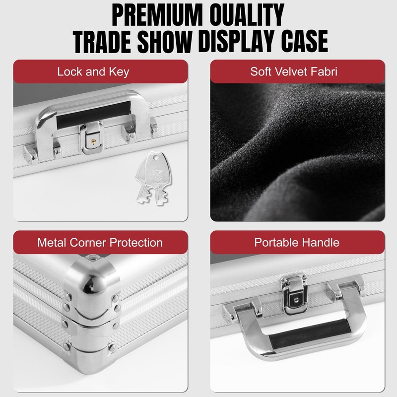 Large Aluminum Cards Display Case, 34"x22" Portable Table Top Trade Showcase with Locks, Suits for Sport Trading Card and Graded Cards Holder with Clear Acrylic, Jewelry Craft Collector Shows
