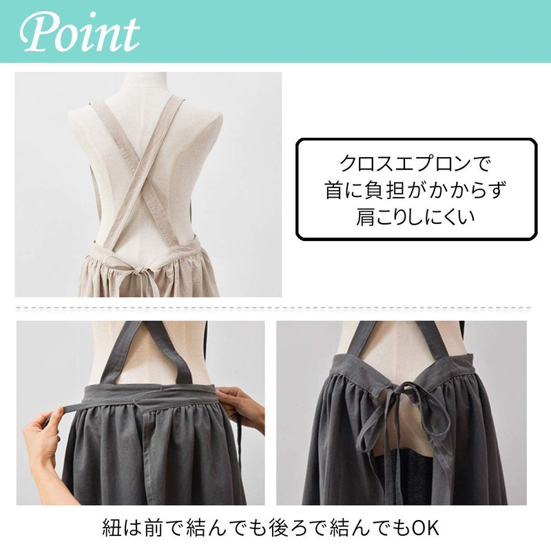 • [Multi-use] Suitable for everyday use in the kitchen, garden, workshop, and even when working at cafes, nurseries, schools, and grocery storesA one-piece design with ample coverage for women who are conscious about their buttocks. Also comes with left and right side pockets for your convenience. This cross apron reduces neck strain, especially for those with stiff shoulders.