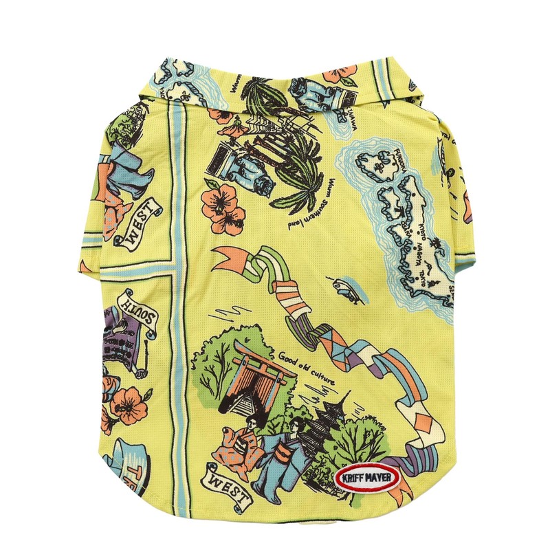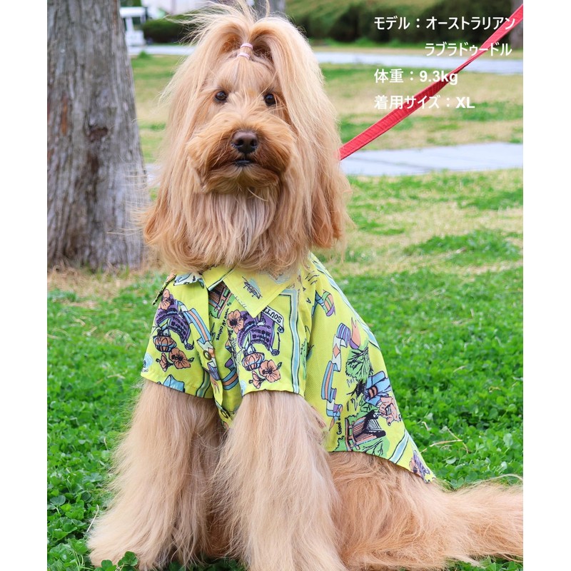 【かるさらエアー素材】に、オリジナルの総柄をプリントした開襟シャツがドッグウェアにも登場。