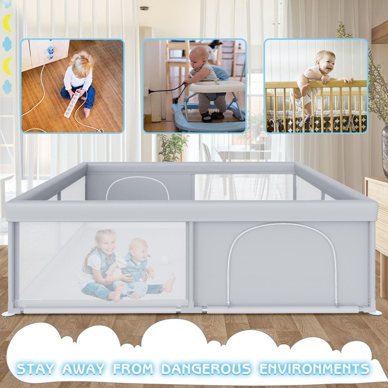 besuhot Large Baby Playpen 79x79 Inch, Playpens for Babies and Toddlers, Indoor & Outdoor Extra Large Kids Activity Center, Baby Play Yard with Zipper Gates.