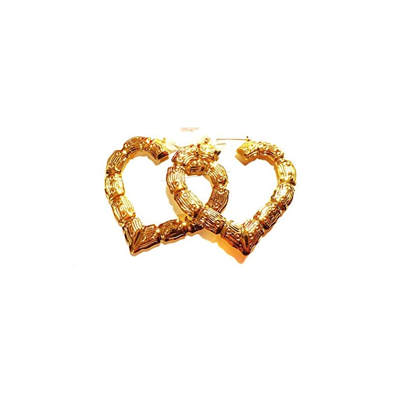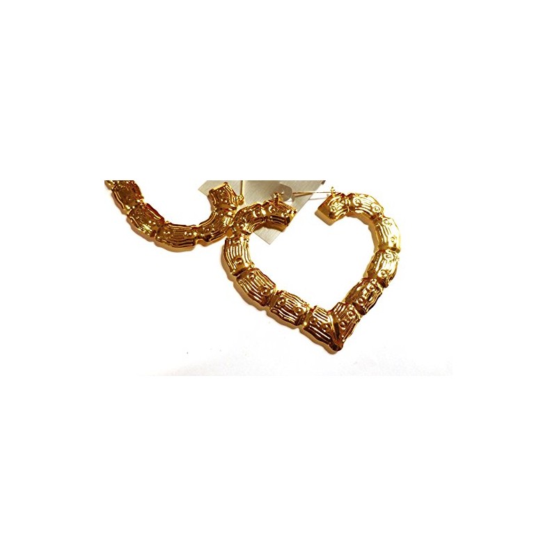 Large Bamboo Heart Hoop Earrings Gold Tone Earrings 3.5 Inch