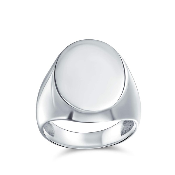 Large Basic Simple Initial Monogram Engravable .925 Sterling Silver Oval Signet Ring For Men Women Teen Shinny Finish