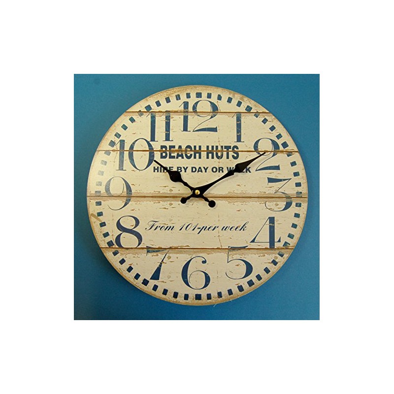Large "Beach Huts" Wall Clock in Vintage, Antique, Retro, Aged Style