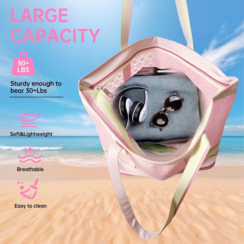 - 【Breathable & Sand-Resistant Design】Crafted from durable polyester mesh, this beach bag keeps your belongings well-ventilated to avoid trapped odors. The reinforced flat bottom prevents sand from seeping in, so you can set it down anywhere worry-free. Plus, the smooth fabric resists dirt and cleans effortlessly!