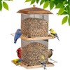 - DOUBLE TIERED BIRD FEEDER: Both the top and bottom 2 tiers of the bird feeder are designed with feeding trays and perches for birds to perch and enjoy their seed food.