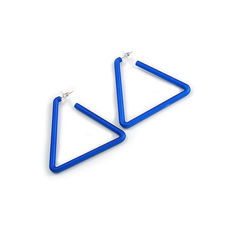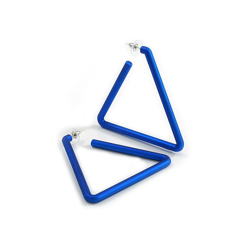 Large Blue Triangular Hoop Style Earrings - 65mm Tall