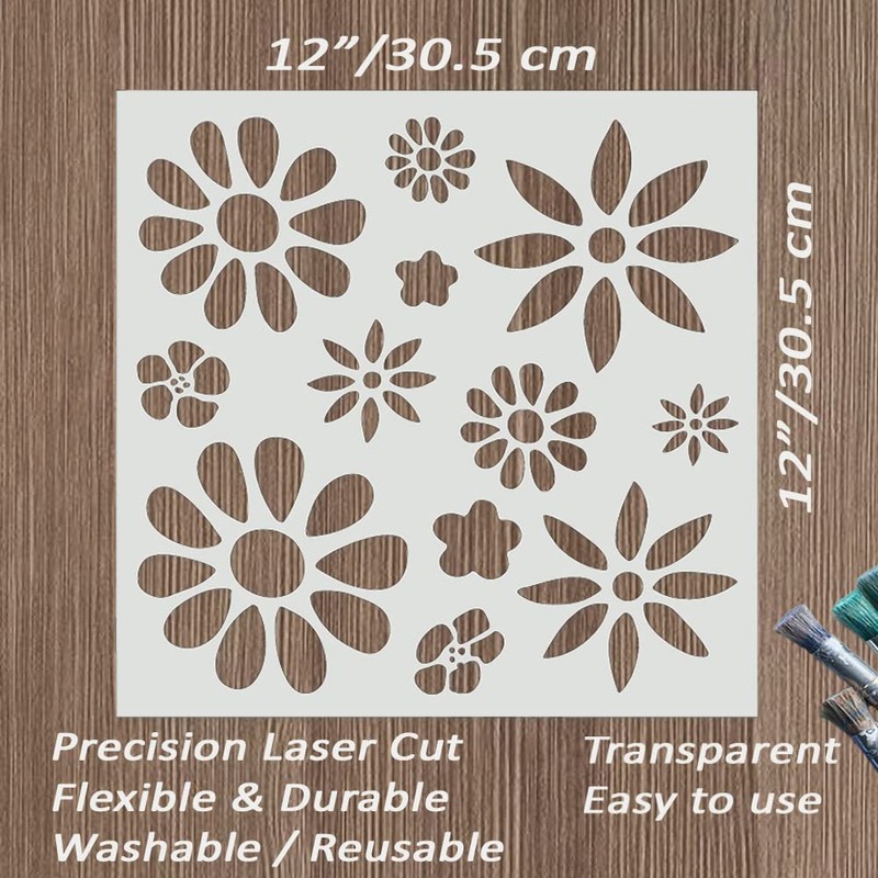 - LARGE FLOWERS STENCIL: Create charming decorations with our large BOHO flowers stencil measuring 12x12 inches