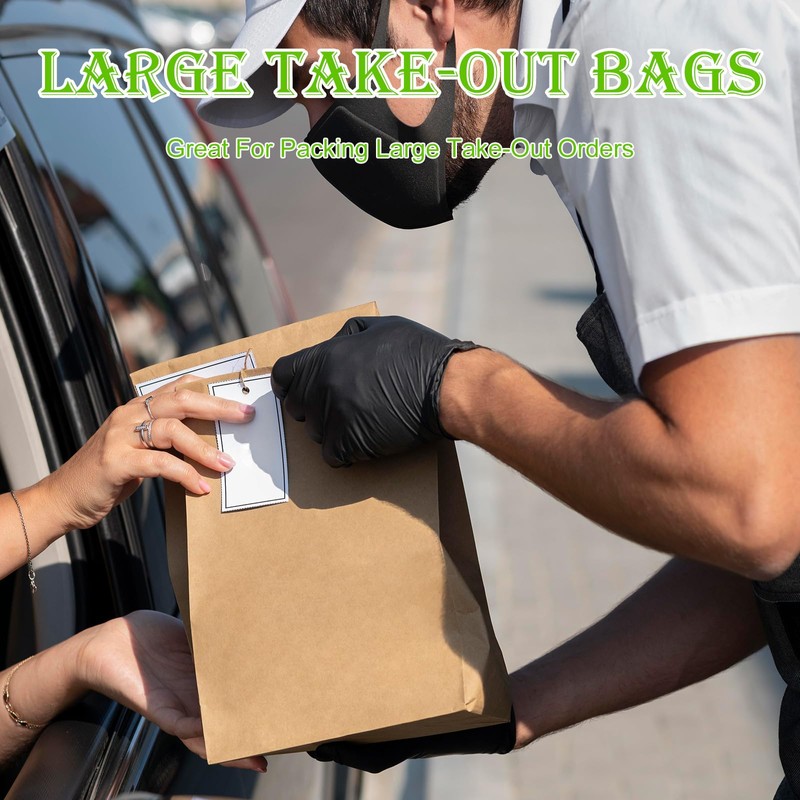 - Premium Material Brown Grocery Paper Bags: These large bags are made of food grade 80g kraft brown paper, which are sturdy and thick enough to hold up to 2-35 pounds. They are environmental friendly and recyclable, ideal for retail and small business use as packing bags or takeout bags