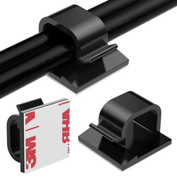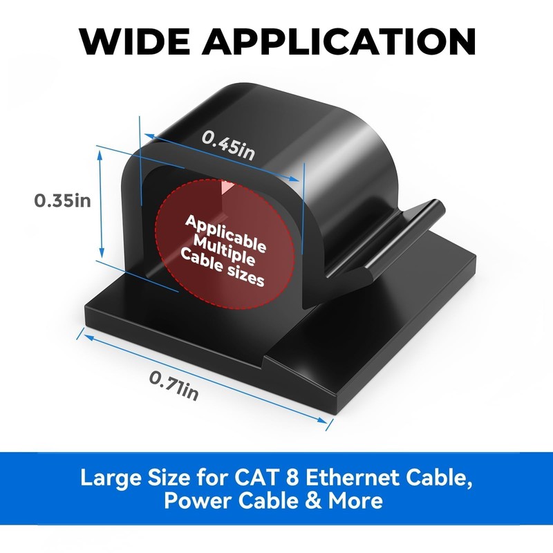 Large Cable Clips 40pcs with Strong Adhesive Tapes,Wire Holder Organizer Cord Management for Car, Office and Home (Black- L05(40PCS))