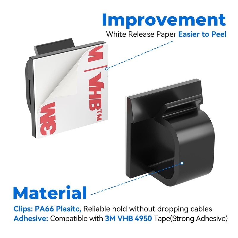 - 【Strong】Made of eco-friendly premium Nylon PA66 material, clips with strong adhesive tape