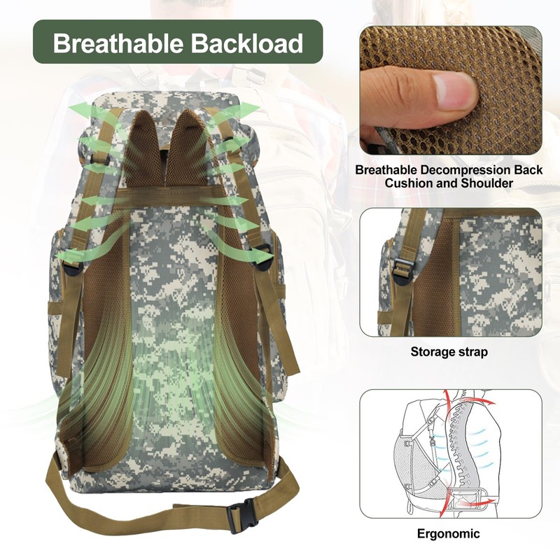 - Multi functional use: This multifunctional large capacity backpack can be used for hiking backpacks, camping backpacks, travel backpacks, mountaineering backpacks, fishing backpacks, tactical backpacks, leisure backpacks, sports backpacks, or weekend backpacks, suitable for both men and women.