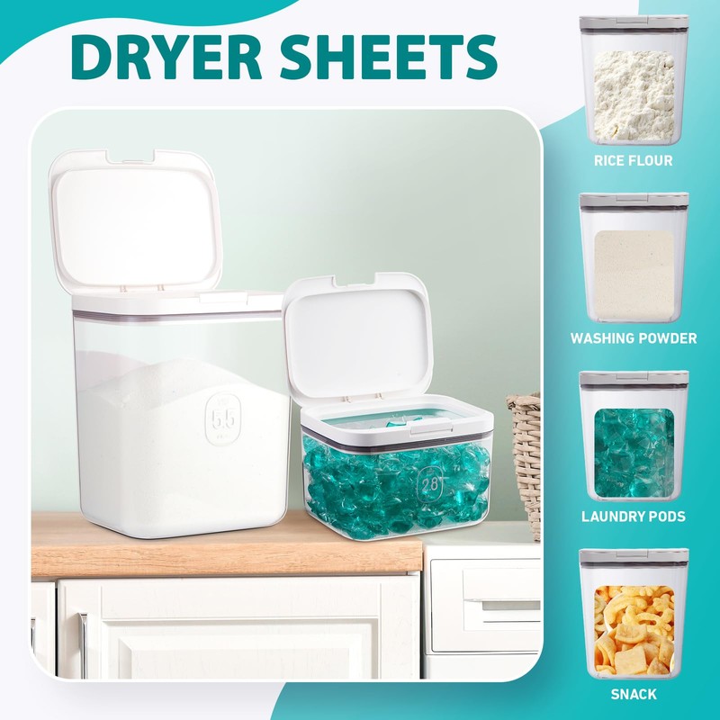 Large Capacity Laundry Powder Container With Pop-Up Lid, 5.5L and 2.8L Detergent Holder for Laundry Pods and Airtight Dishwasher Pod, Storage Container for Dry Food, Rice Flour with Scoop