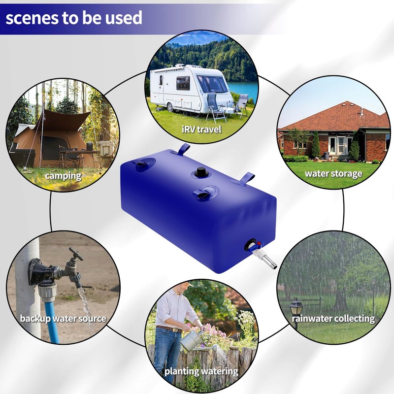 - đ§ăConvenient and PracticalăThe large-capacity water storage bladder container is designed with a faucet and 4 portable pull tabs, when you need to use water, just open the water outlet valve. As a non-potable water storage and rainwater recycling collector, it is suitable for drought, fire prevention, emergency water, outdoor agricultural irrigation, etc. It is practical!