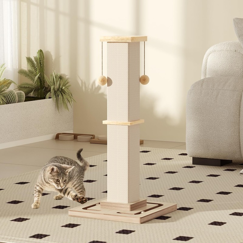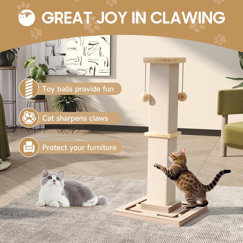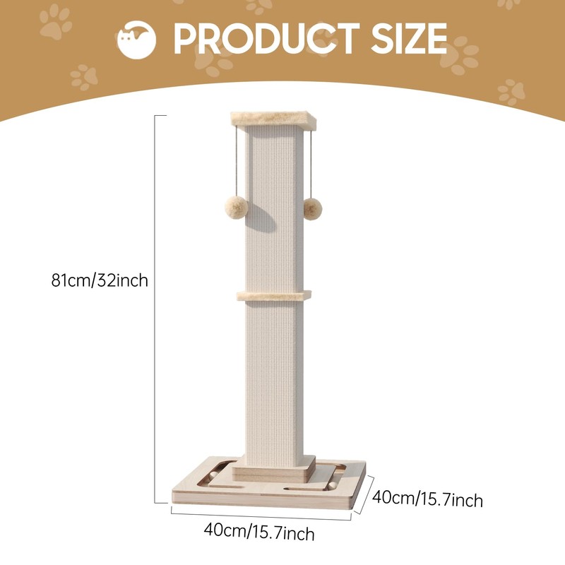 Large Cat Scratching Post, 32 Inch Tall Heavy Duty Scratching Post with Tracking Interactive Toys for Indoor