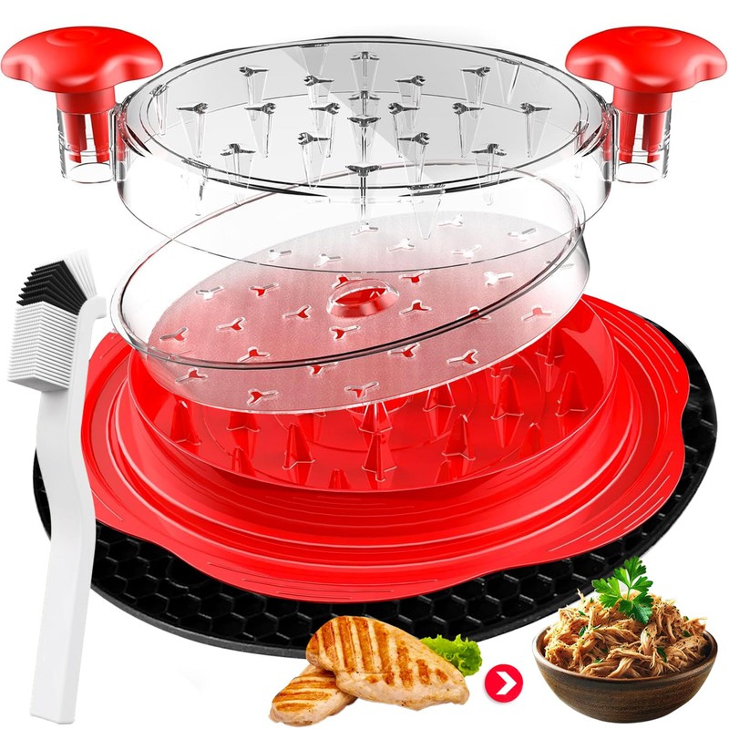 - ๐๐น๐น-๐ถ๐ป-๐ข๐ป๐ฒ: Our chicken shredder tool twist large comes with a tray, cleaning brush, and a non-slip mat, making meal prep a breeze. This chicken shredding set is ideal for busy families and those who arrange healthy eating. Enjoy cooking with our chicken breast shredder!