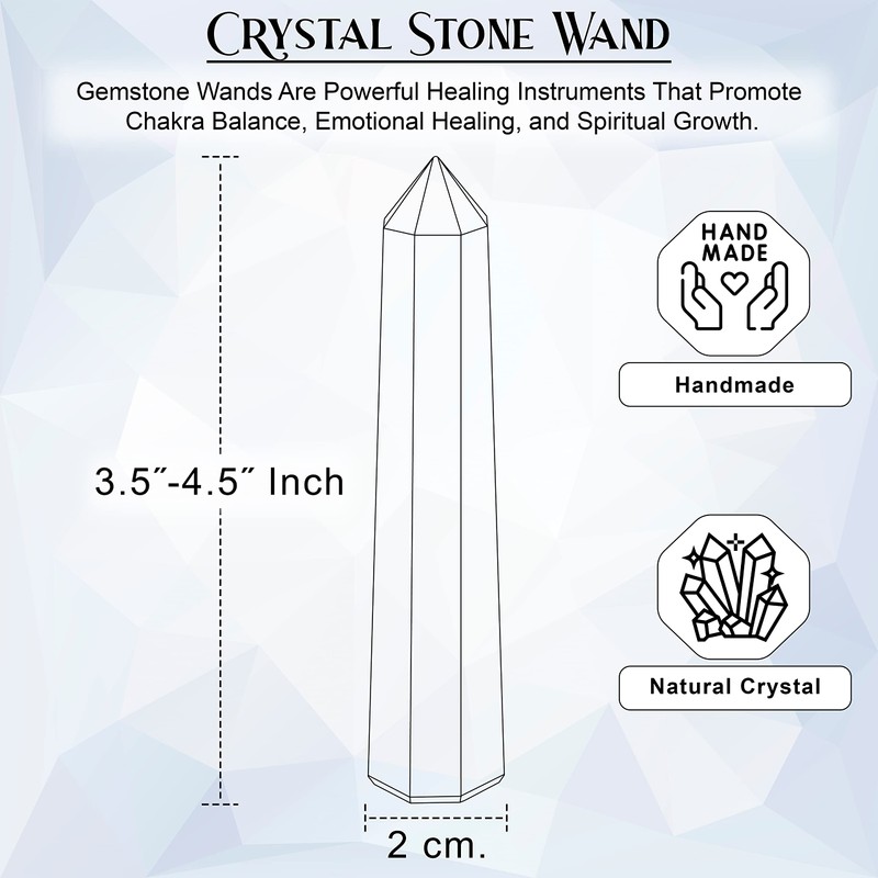- Contents: your package will contain set of 1 crystal point wand of hexagon shaped with 8 sides; the height of the wall is approx. 3.5-4.5 inches. and comes With a pouch and a crystal guide. Each stone is hand-selected with care, love, and positive energy.