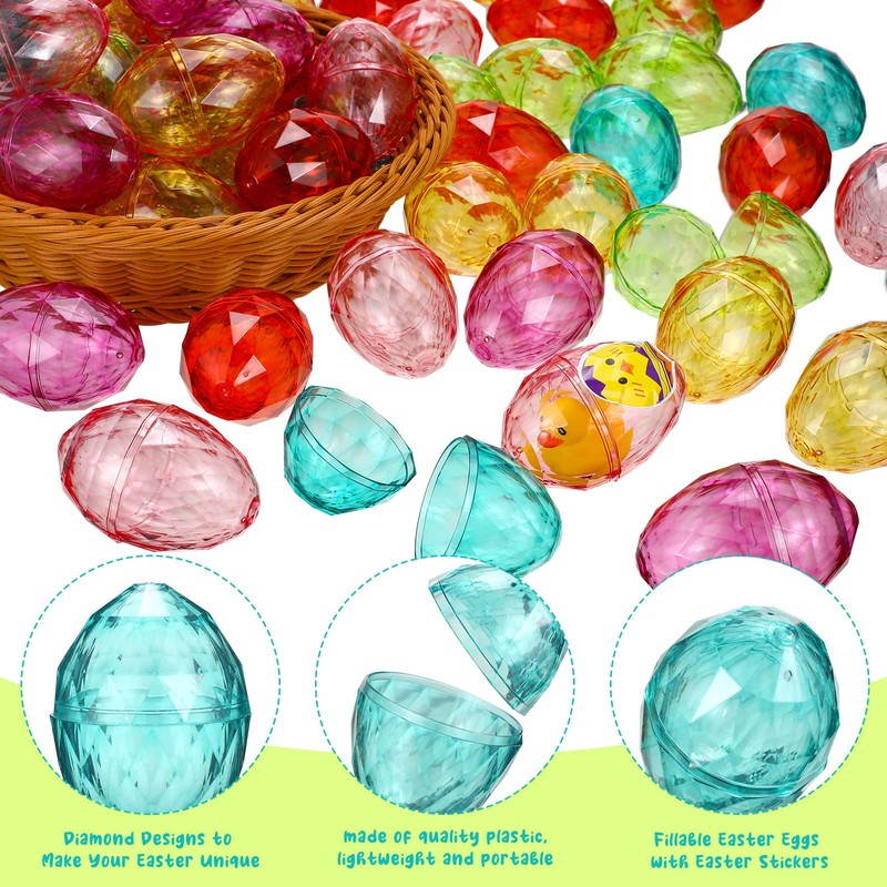 - Exquisite Gifts: these translucent colorful Easter eggs bulk will add fun and joyful atmosphere to your party and leave good memories for your guests, the novelty diamond design and beautiful colors make them ideal gifts for birthday parties, carnival prizes, classroom prizes, gift basket fillers, and so on