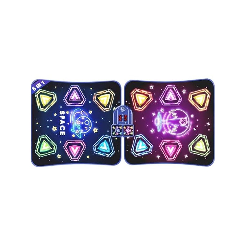 Large Double Electronic Dance Mats, Dance Pad with LED Light & Wireless Bluetooth, Music Dance Toy with 6 Game Modes, Challenge Game for Single & Double Players, Dance Mat Toy for 3-12 Year Old Girls