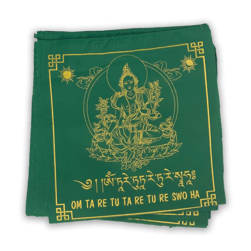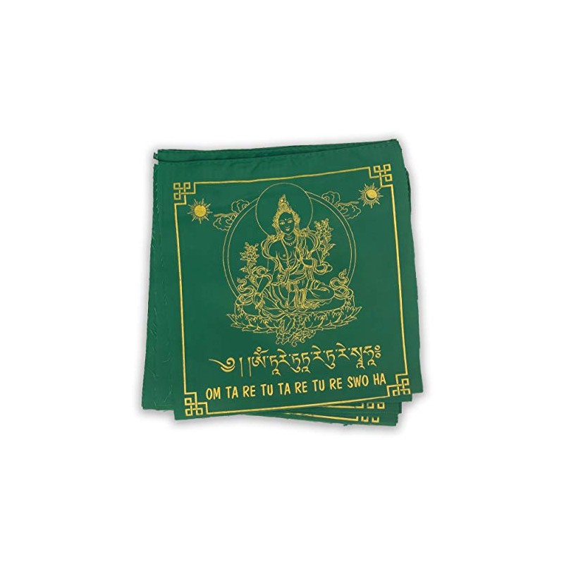 Large Handmade Tibetan Solid Green Color Green Tara Prayer Flags