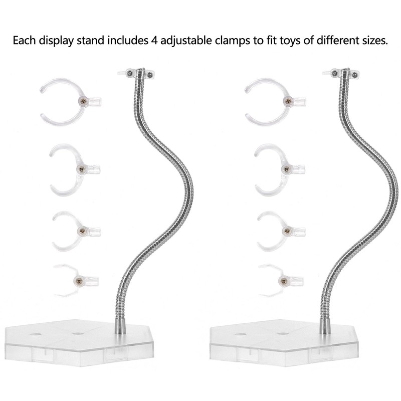 - Adjustable Metal Arm - Our clear stands for action figures feature a flexible metal support arm that allows you to effortlessly adjust and position your figures in the perfect pose,whether standing, crouching, flying, or hovering.